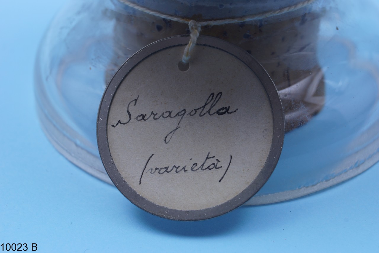 - NOTIZIE STORICO CRITICHE Barattolo in vetro con tappo in sughero contenente spighe essiccate di Triticum durum Desf. var. Saragolla. La specie è stata pubblicata da: René Louiche Desfontaines, in: Flora Atlantica, 1: 114. 1798. Il nome comune della specie è grano duro varietà Saragolla. Il barattolo, insieme ad altri beni botanici, costituiva il Gabinetto di Fisica e di Storia Naturale del Seminario Regionale "Pianum" Abruzzo e Molise