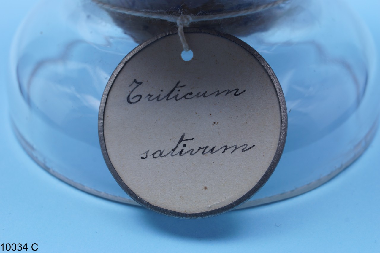 - NOTIZIE STORICO CRITICHE Barattolo in vetro con tappo in sughero contenente cariossidi di Triticum aestivum L. var. Solina. La specie è stata pubblicata da: Carl Linnaeus, in: Species Plantarum, 1: 85. 1753. Il nome comune della specie è grano tenero varietà Solina. Il barattolo, insieme ad altri beni botanici, costituiva il Gabinetto di Fisica e di Storia Naturale del Seminario Regionale "Pianum" Abruzzo e Molise
