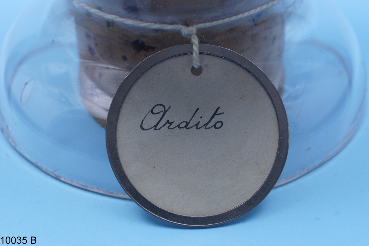 - NOTIZIE STORICO CRITICHE Barattolo in vetro con tappo in sughero contenente spighe essiccate di Triticum aestivum L. var. Ardito. La specie è stata pubblicata da: Carl Linnaeus, in: Species Plantarum, 1: 85. 1753. Il nome comune della specie è grano tenero varietà Ardito. Il barattolo, insieme ad altri beni botanici, costituiva il Gabinetto di Fisica e di Storia Naturale del Seminario Regionale "Pianum" Abruzzo e Molise