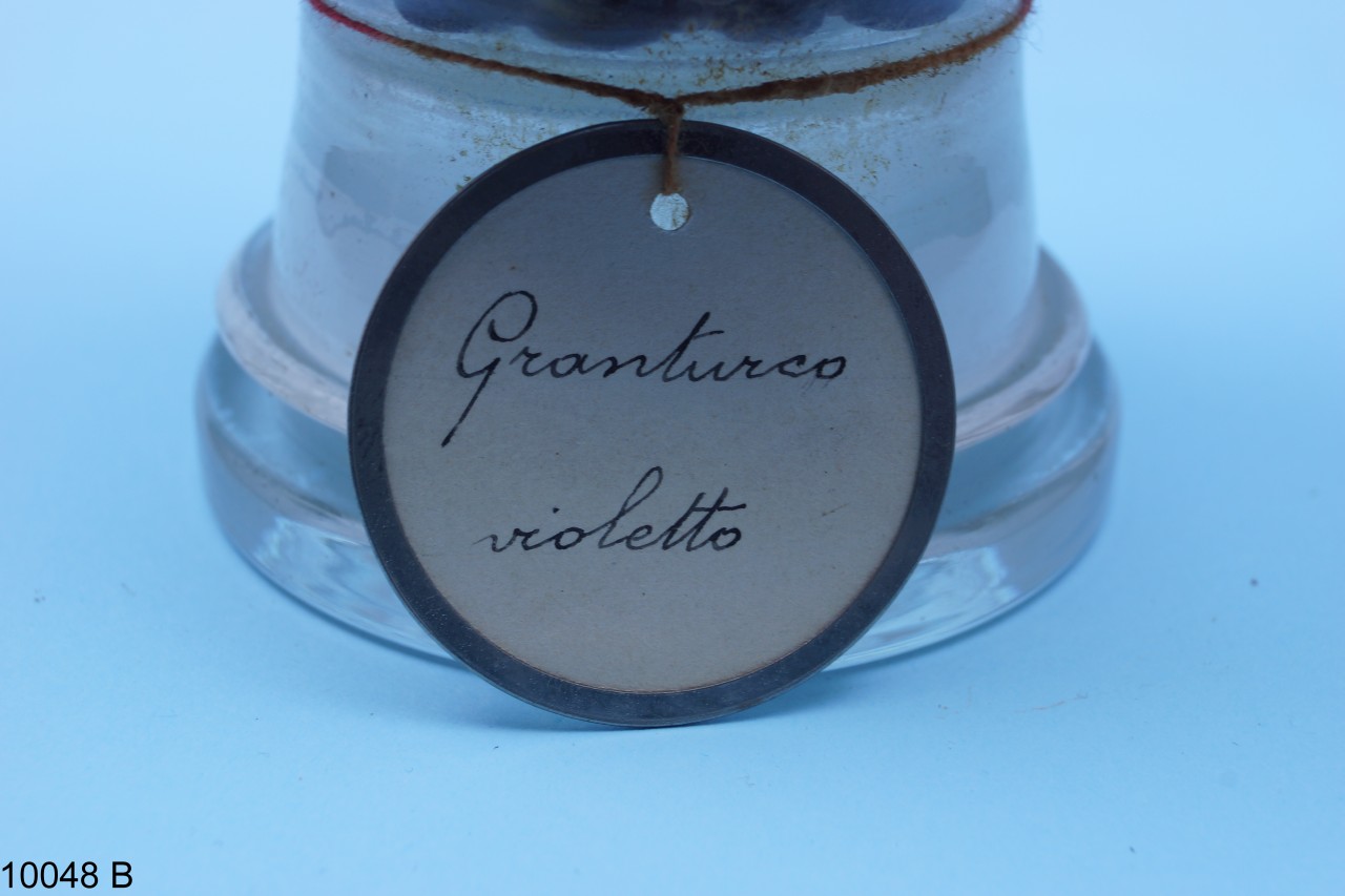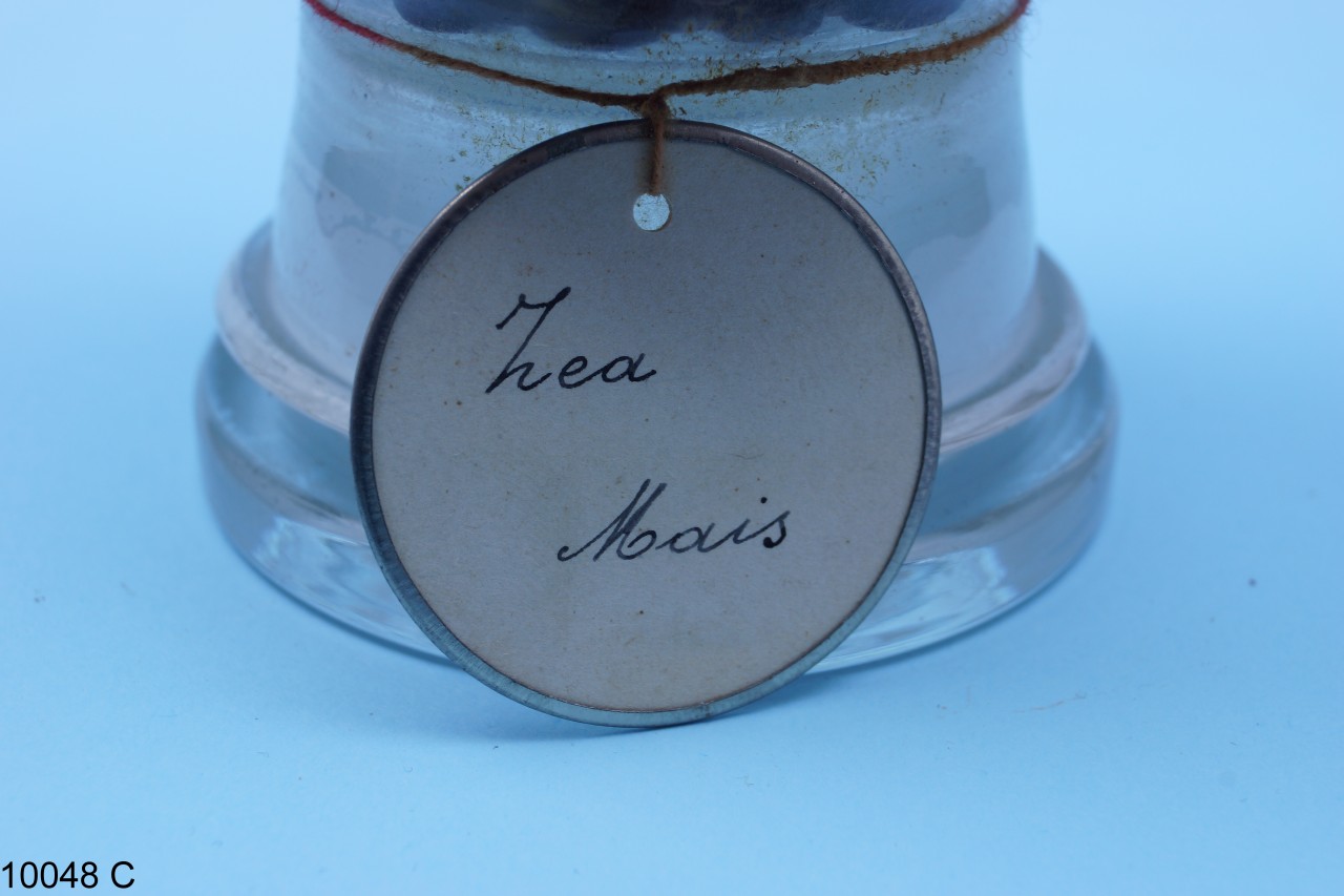 - NOTIZIE STORICO CRITICHE Barattolo in vetro con tappo in sughero contenente cariossidi di Zea mays L. La specie è stata pubblicata da: Carl Linnaeus, in: Species Plantarum, 2: 971. 1753. I nomi comuni della specie sono granoturco, granturco o mais. Il barattolo, insieme ad altri beni botanici, costituiva il Gabinetto di Fisica e di Storia Naturale del Seminario Regionale "Pianum" Abruzzo e Molise