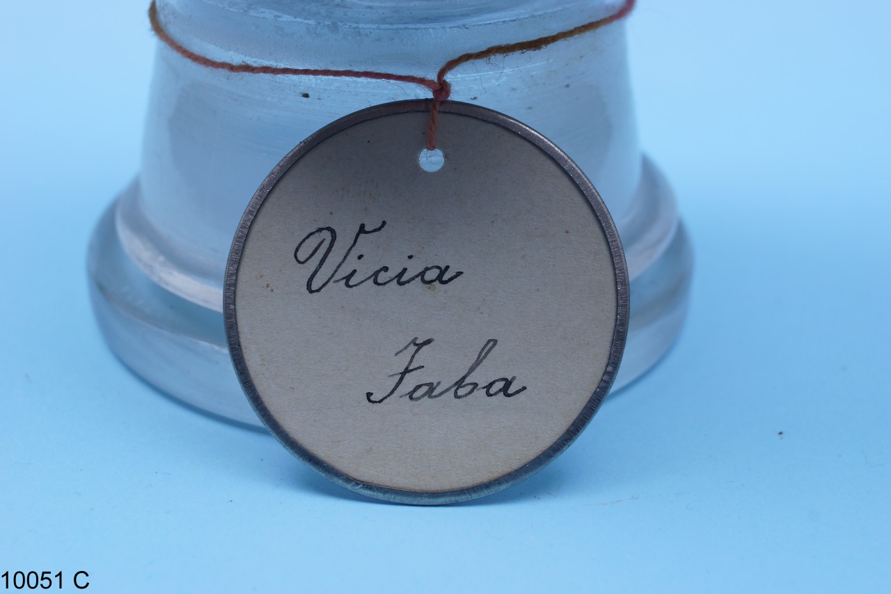 - NOTIZIE STORICO CRITICHE Barattolo in vetro con tappo in sughero contenente semi di Vicia faba L. La specie è stata pubblicata da: Carl Linnaeus, in: Species Plantarum, 2: 737. 1753. Il nome comune della specie è fava. Il barattolo, insieme ad altri beni botanici, costituiva il Gabinetto di Fisica e di Storia Naturale del Seminario Regionale "Pianum" Abruzzo e Molise