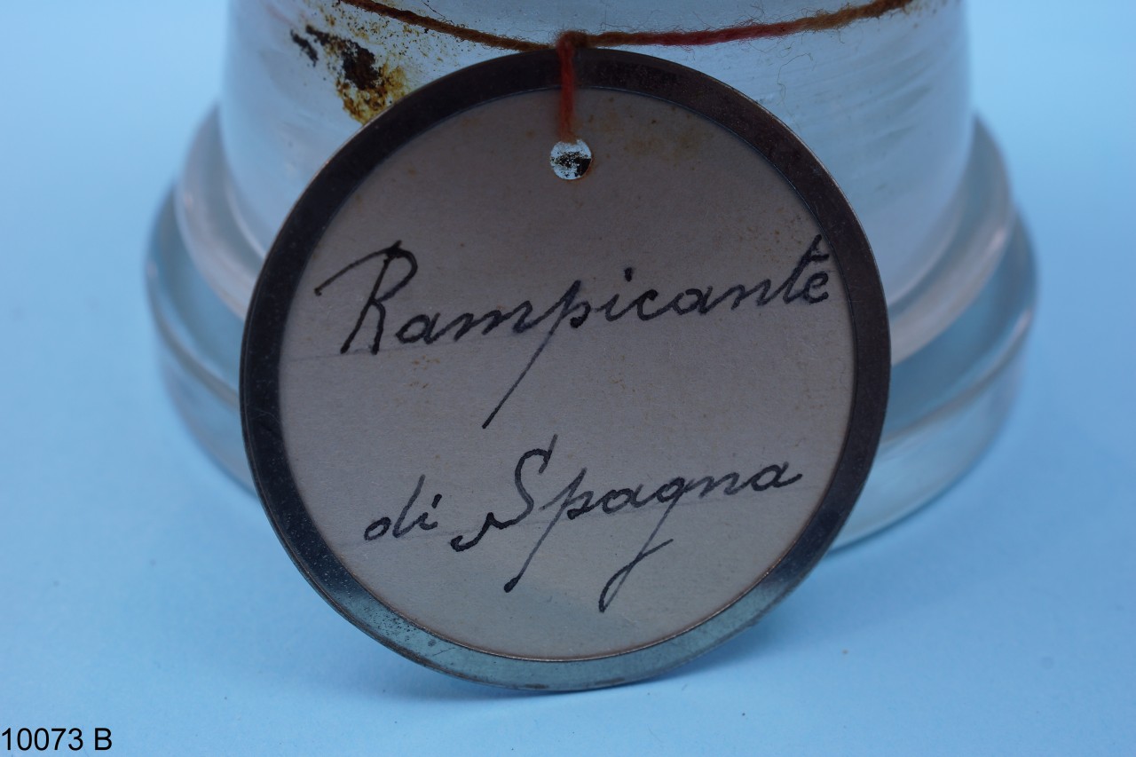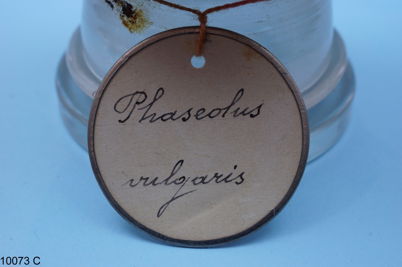 - NOTIZIE STORICO CRITICHE Barattolo in vetro con tappo in sughero contenente semi di Phaseolus coccineus L. La specie è stata pubblicata da: Carl Linnaeus, in: Species Plantarum, 2: 274. 1753. Il nome comune della specie è fagiolo. Il barattolo, insieme ad altri beni botanici, costituiva il Gabinetto di Fisica e di Storia Naturale del Seminario Regionale "Pianum" Abruzzo e Molise