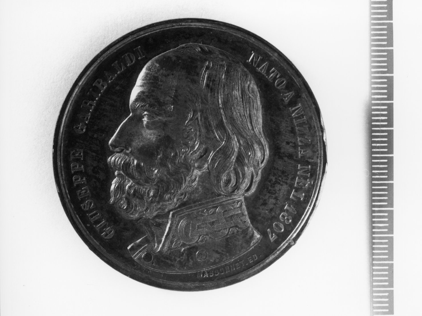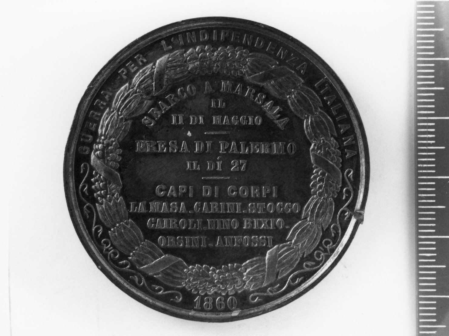 Dritto: Testa di Garibaldi a s. Rovescio: Legenda entro corona d'alloro con nastri