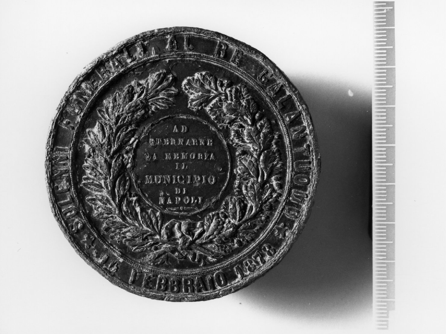Dritto: Testa di Vittorio Emanuele II a s. Rovescio: Legenda entro corona d'alloro e quercia