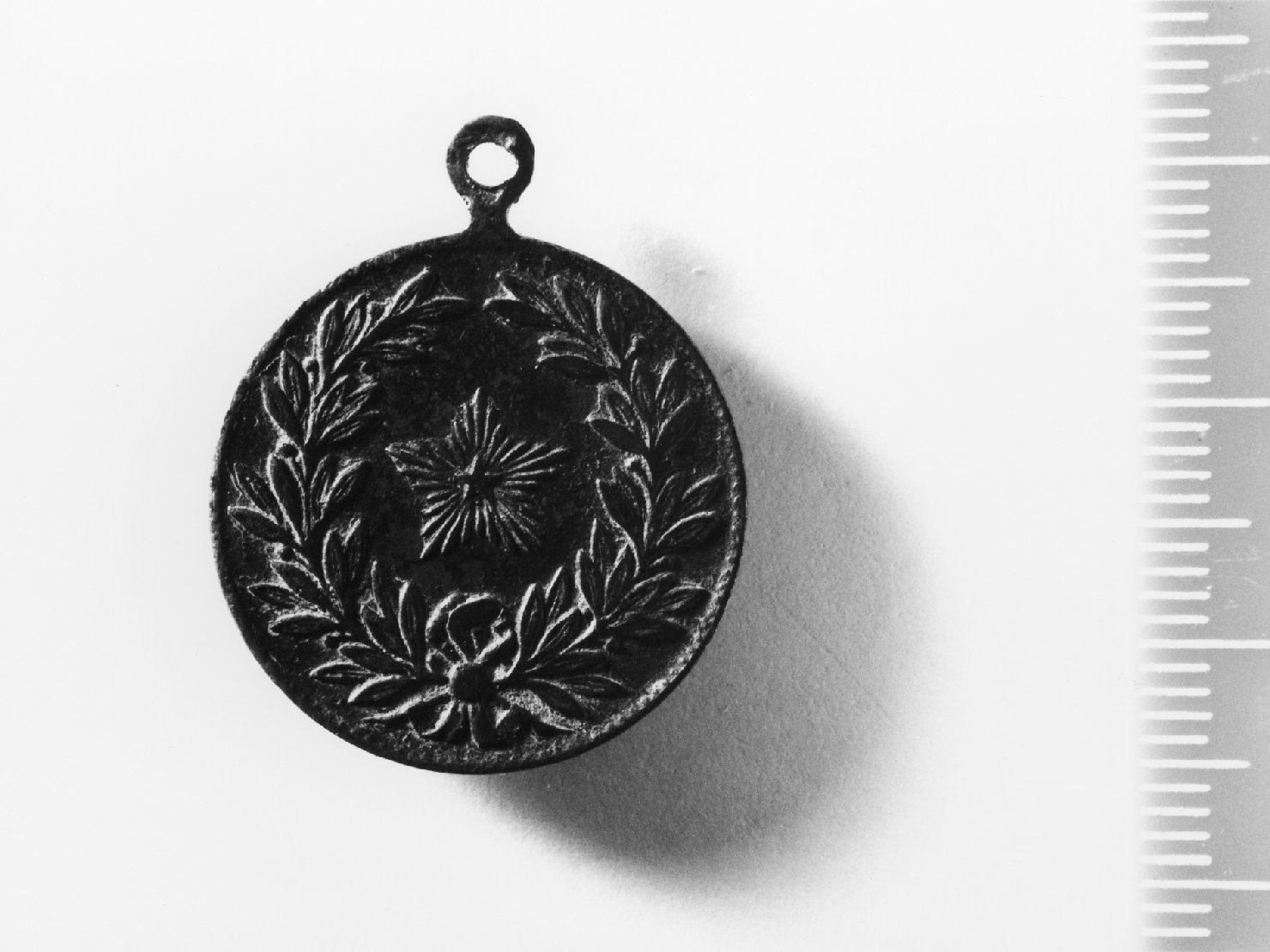 Dritto: Testa di Umberto I a d.; contorno perlinato; con appiccagnolo. Rovescio: Stella raggiata entro corona d'alloro; contorno perlinato