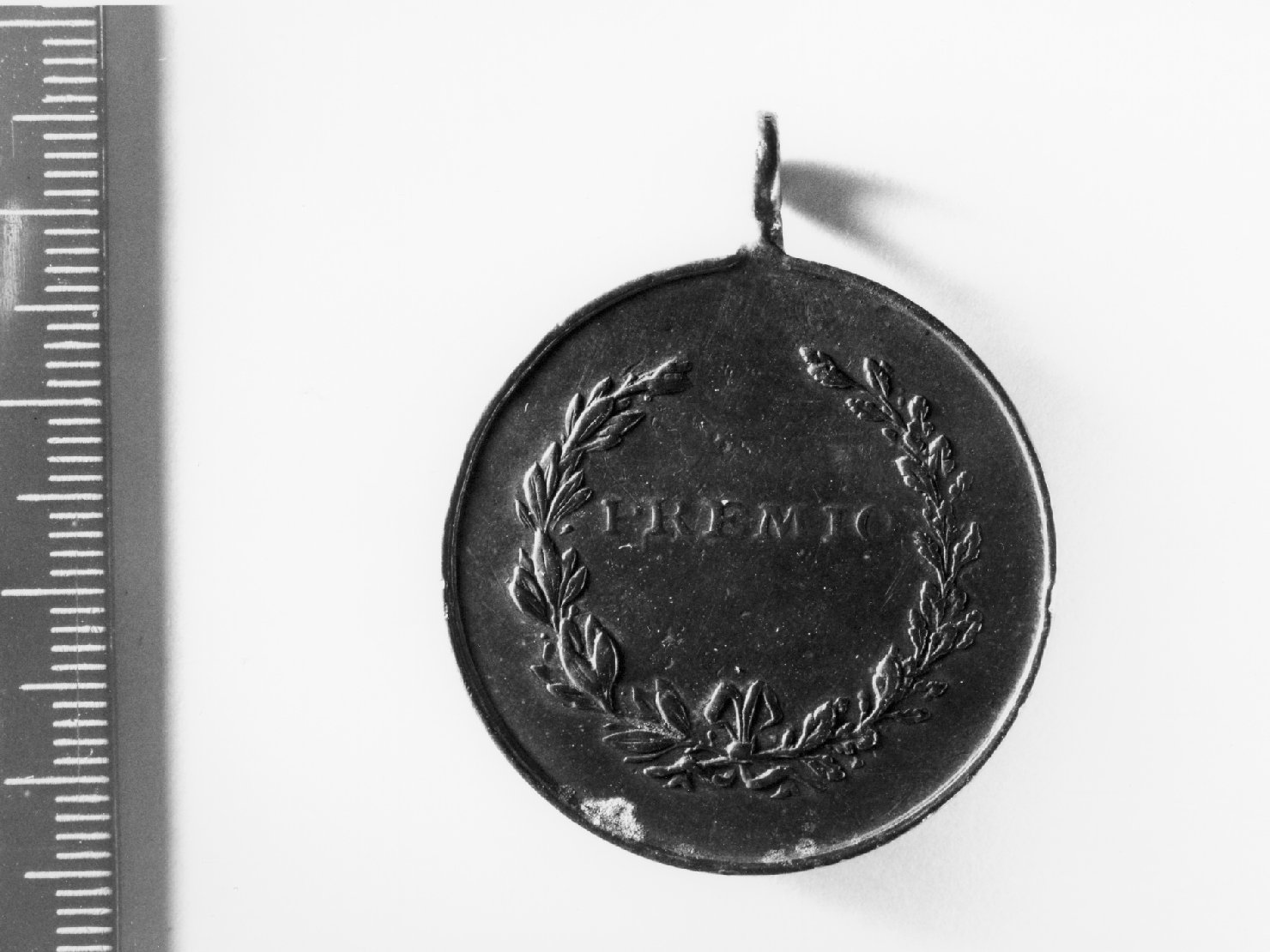 Dritto: Testa di Umberto I a s.; con appiccagnolo. Rovescio: Legenda entro corona d'alloro e quercia