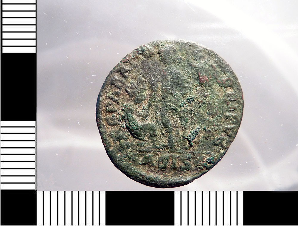 Dritto: Busto diademato, drappeggiato e corazzato di Graziano a d. Rovescio: L'Imperatore stante frontale, testa a s., solleva con la mano d. una figura femminile turrita inginocchiata a d. e reca nella mano s. un globo sormontato da una Vittoria, bordo perlinato