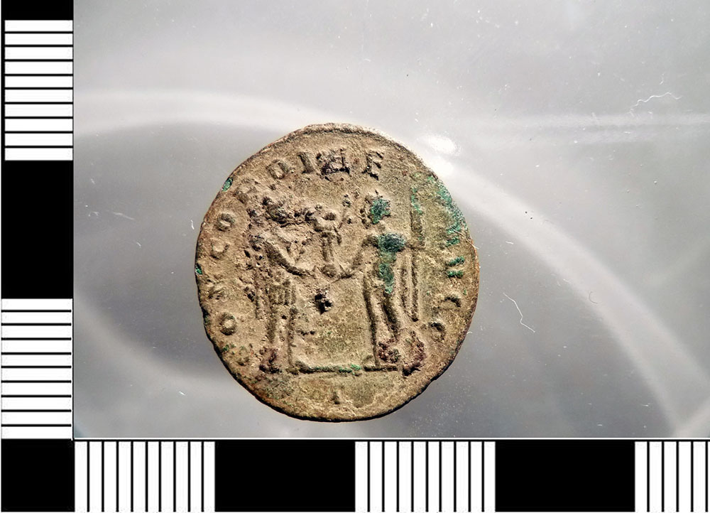 Dritto: Busto radiato e drappeggiato, di tre quarti, di Diocleziano a d. Rovescio: L’Imperatore stante a d. riceve una Vittoria su globo da Giove, stante a s. mentre si appoggia con la mano s. ad uno scettro