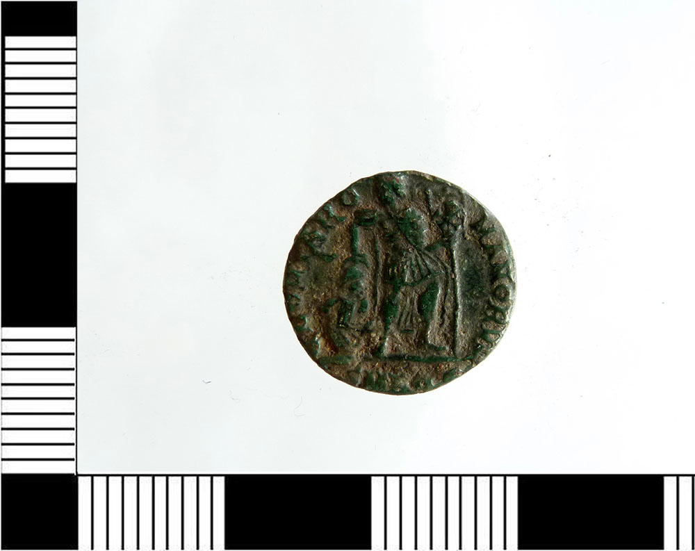 Dritto: Busto diademato, drappeggiato e corazzato di Arcadio a d. Rovescio: L’Imperatore andante a d. trascina con la mano d. un prigioniero e reca nella s. il labarum