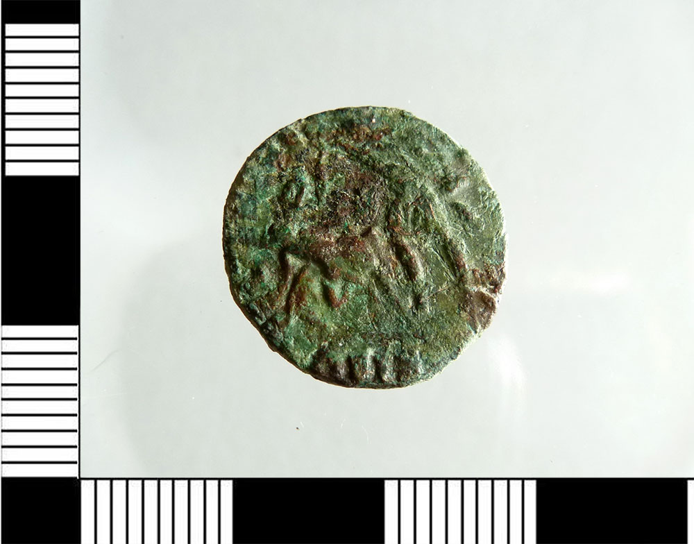 Dritto: Busto drappeggiato e corazzato di Costanzo Gallo a d. Rovescio: Soldato stante a s. abbatte un cavaliere, senza copricapo, che cadendo da cavallo solleva il braccio s.; a terra a d., uno scudo