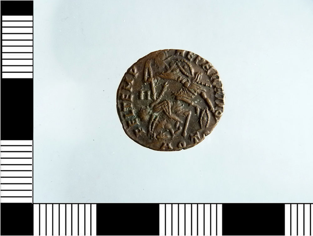 Dritto: Busto diademato, drappeggiato e corazzato di Costanzo II a d., bordo perlinato. Rovescio: Soldato stante a s. abbatte un cavaliere, senza copricapo, che cadendo da cavallo solleva il braccio s.; a terra a d., uno scudo