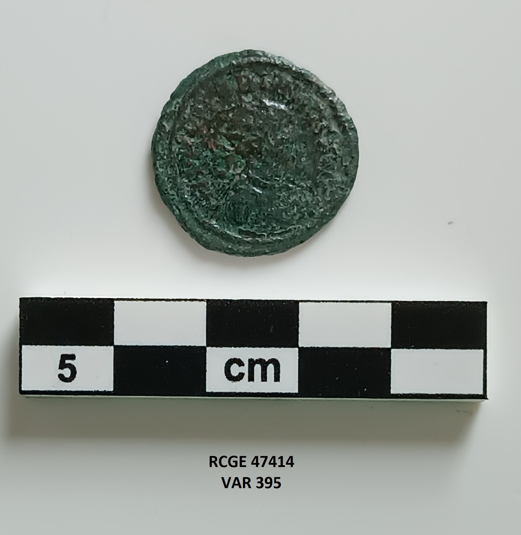 Dritto: busto radiato e paludato a destra. Rovescio: Mercurio stante di prospetto con testa a sinistra, ha borsa (follis) nella destra e caduceo nella sinistra