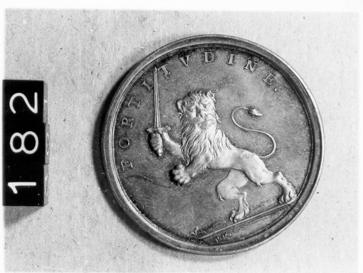 Dritto: Busto armato a destra con nastro e la gran Croce dell'Ordine teutonico sul petto della corazza e il mantello dell'Ordine sulla spalla sinistra; ha i capelli sulla schiena trattenuti da nastro e raccolti sulla nuca. Rovescio: Leone rampante con spada nella mano destra e motto del principe