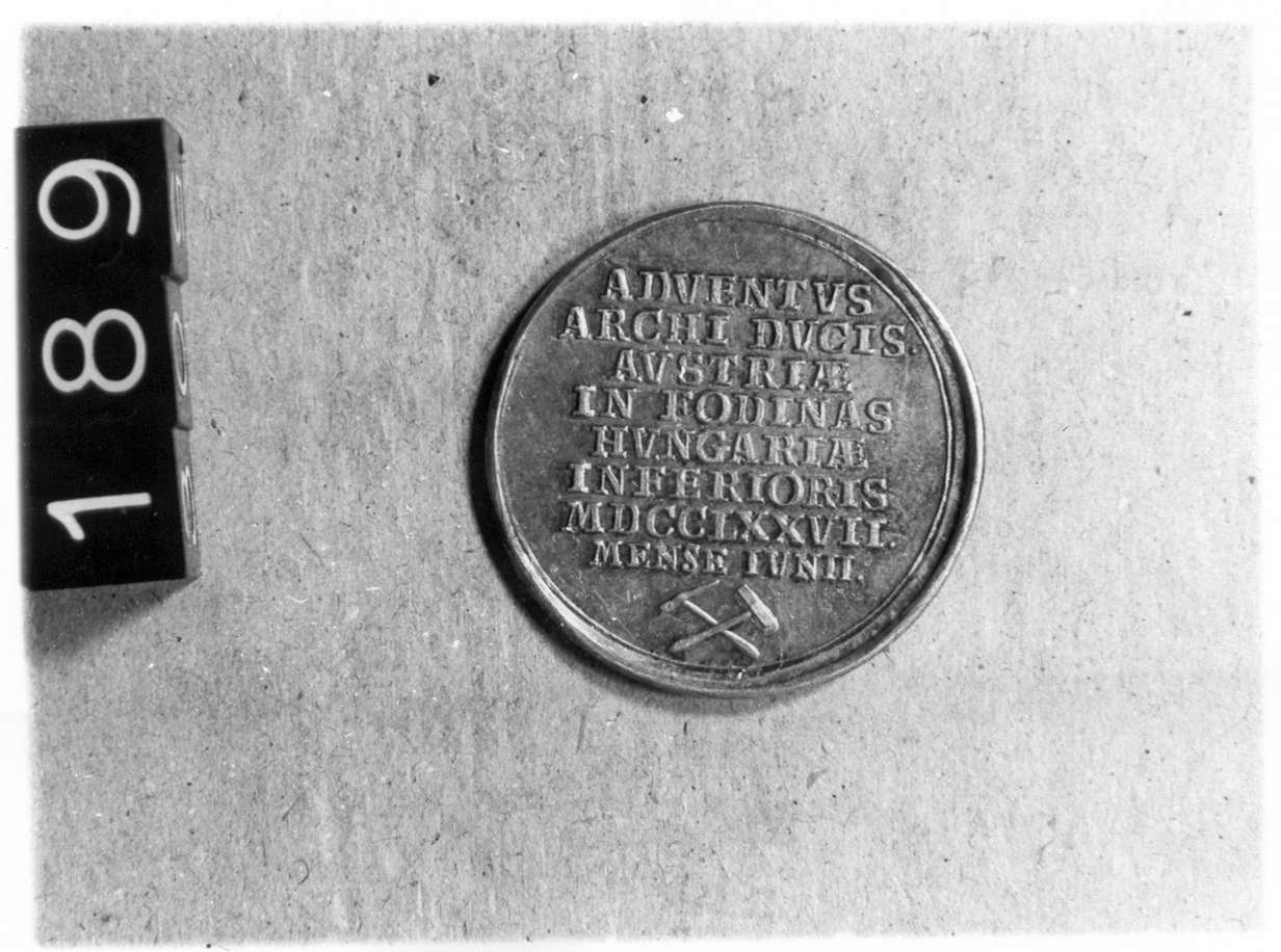 Dritto: Busto armato di profilo a destra con nastro e con la croce di Cavaliere dell'Ordine Teutonico; capelli lunghi raccolti con un nastro sulla nuca. Rovescio: Iscrizione in 8 righe (l'ultima con caratteri più piccoli) terminante, in basso, con martello e piccone incrociati