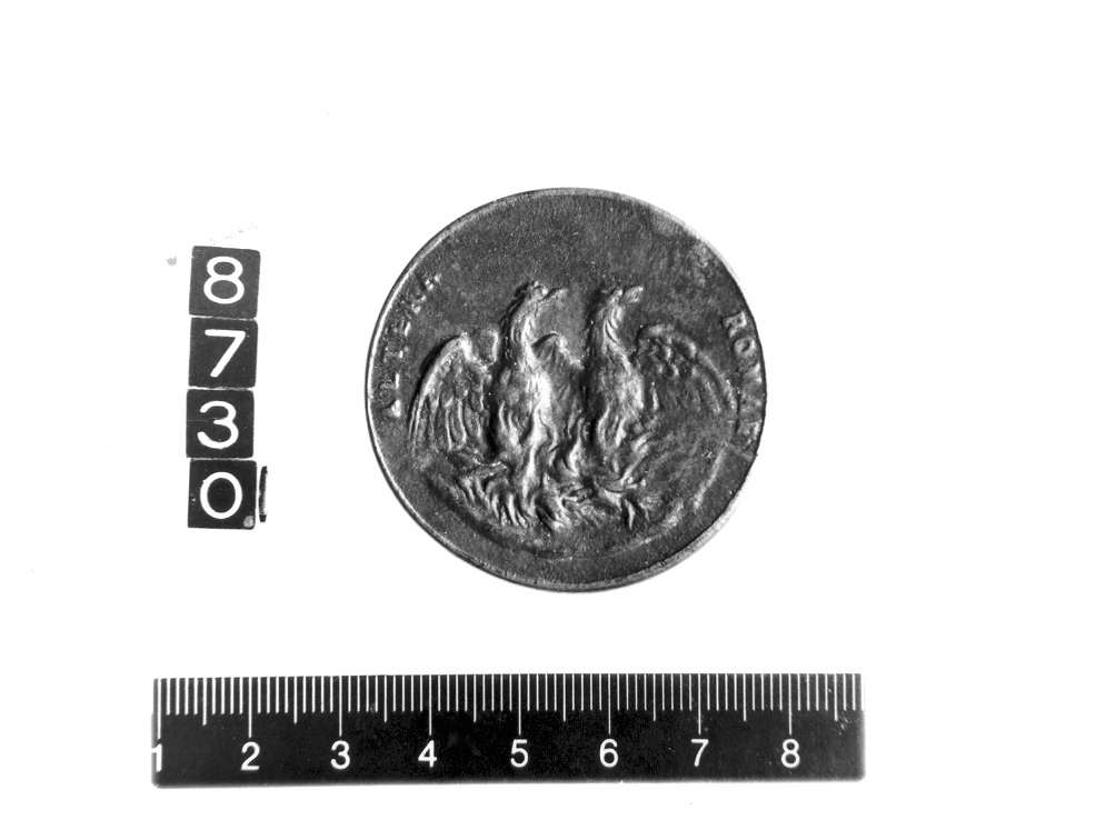 Dritto: Busti laureati di Virgilio Cesarini e Giovanni Pico della Mirandola parzialmente sovrapposti, verso destra; l'uno ha corta barba e baffi, l'altro lunghi capelli. Rovescio: Due fenici in atto di sollevarsi in volo da fuoco verso il sole che brilla sulla destra