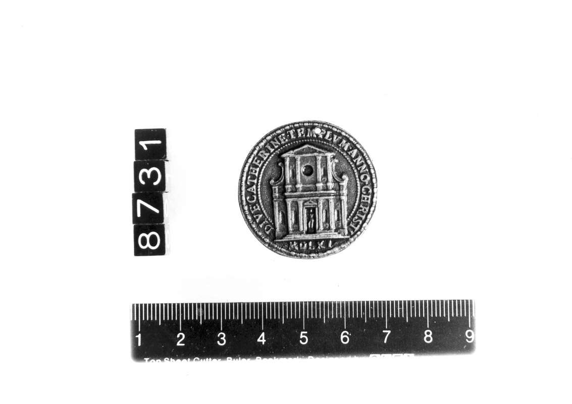 Dritto: Busto di Federico Cesi verso sinistra, con capo tonsurato e folta barba e baffi; indossa la mozzetta cardinalizia. Rovescio: Facciata della chiesa di Santa Caterina dei Funari a Roma