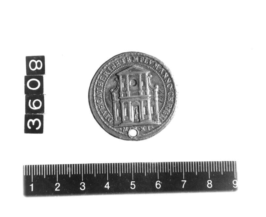 Dritto: Busto di Federico Cesi verso sinistra, con capo tonsurato e folta barba e baffi; indossa la mozzetta cardinalizia. Rovescio: Facciata della chiesa di Santa Caterina dei Funari a Roma