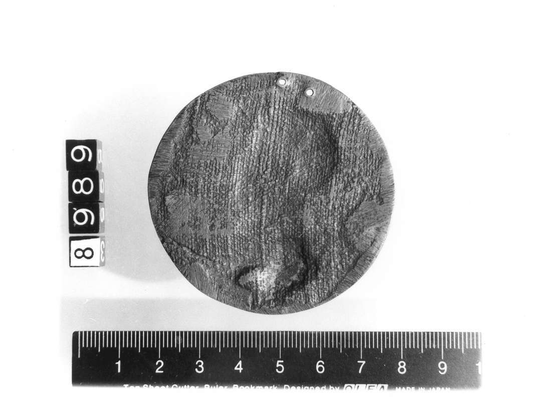 Dritto: Busto di Scipione Gonzaga (1542-1593) verso destra, a capo scoperto, con barba e baffi; veste ricchissima con alta gorgiera in pizzo e mantello panneggiato sul petto e trattenuto da fibbia sulla spalla destra. Rovescio: Mancante