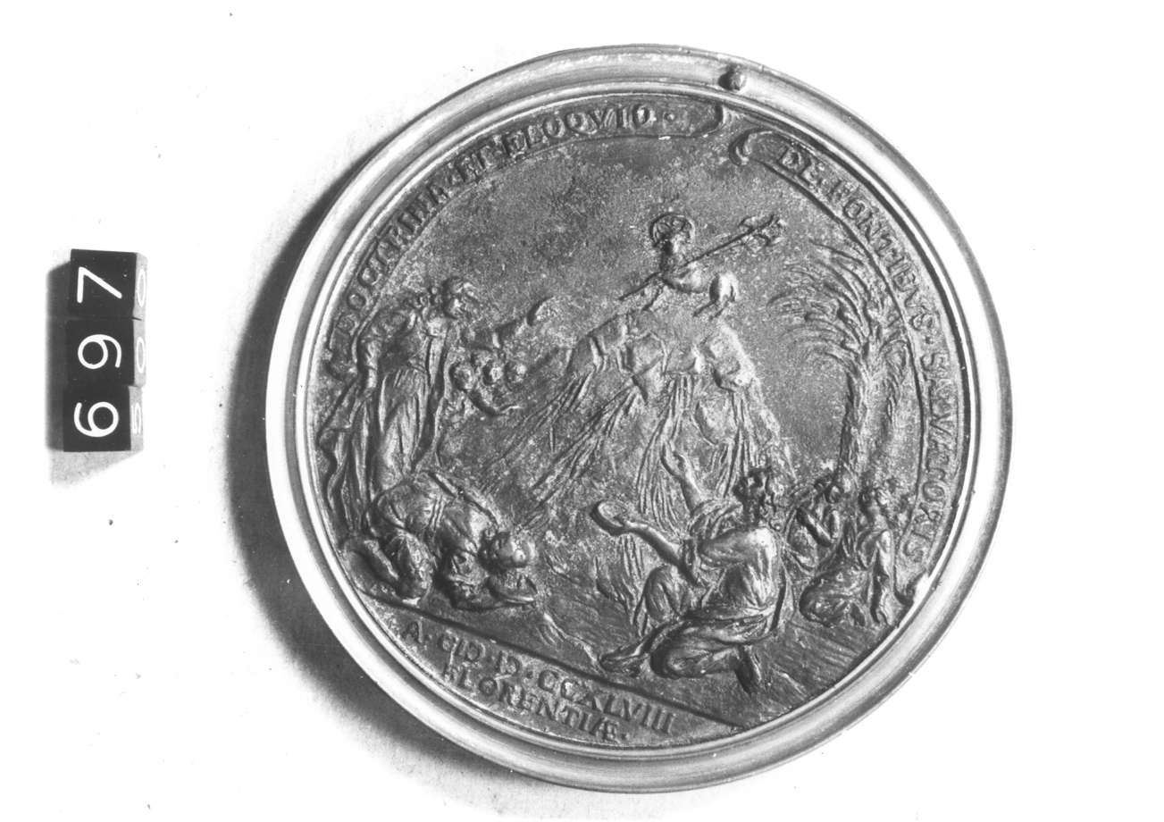 Dritto: Busto a destra in veste carmelitana con zucchetto in testa e cappuccio sulle spalle. Rovescio: L'agnello su un monte da quale sgorgano delle fonti, alle quali si abbeverano testimoni; a destra due palme