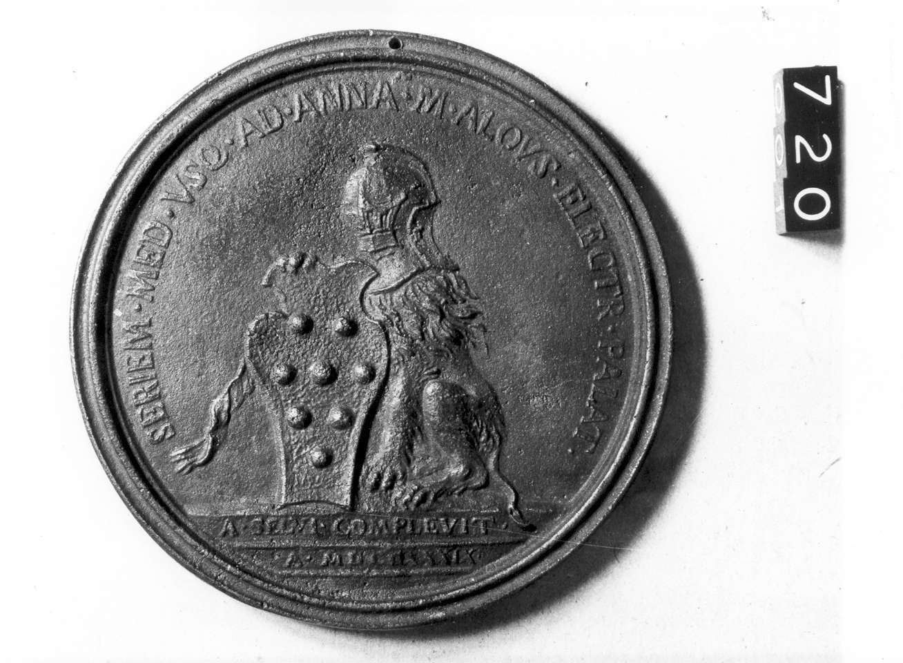 Dritto: Busto a sinistra con berretto; indossa sopraveste con pelliccia al collo e sulla spalla. Rovescio: Leone araldico seduto di 3/4 a sinistra con elmetto chiuso in campo; ha la zampa anteriore destra sollevata per sorreggere uno scudo accartocciato in alto, con le otto palle Medicee