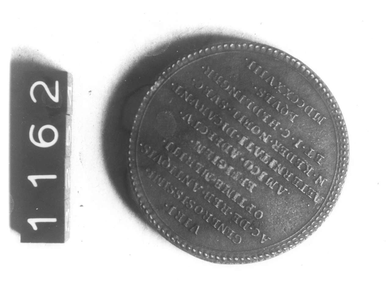 Stosch Philipp (1695-1757) barone von , archeologo e numismatico tedesco, dedica di N. Kedere e I. C. Hedlinger all'amico, 1728,
