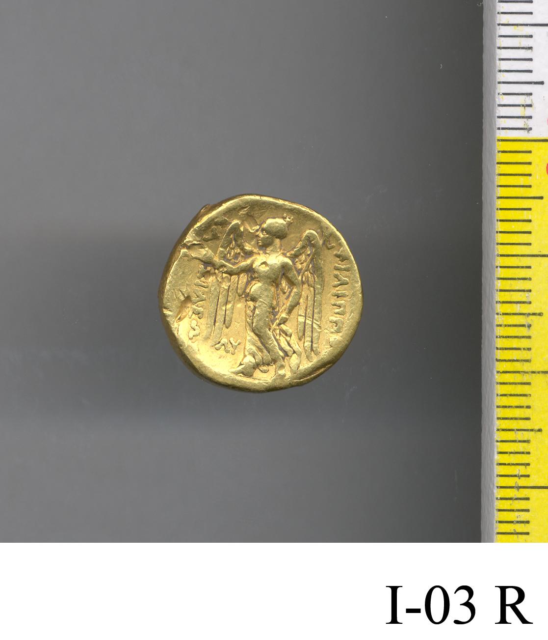 Dritto: Testa di Athena in elmo corinzio a destra. Rovescio: Nike stante a sinistra tiene una corona e stylis (trofeo navale)