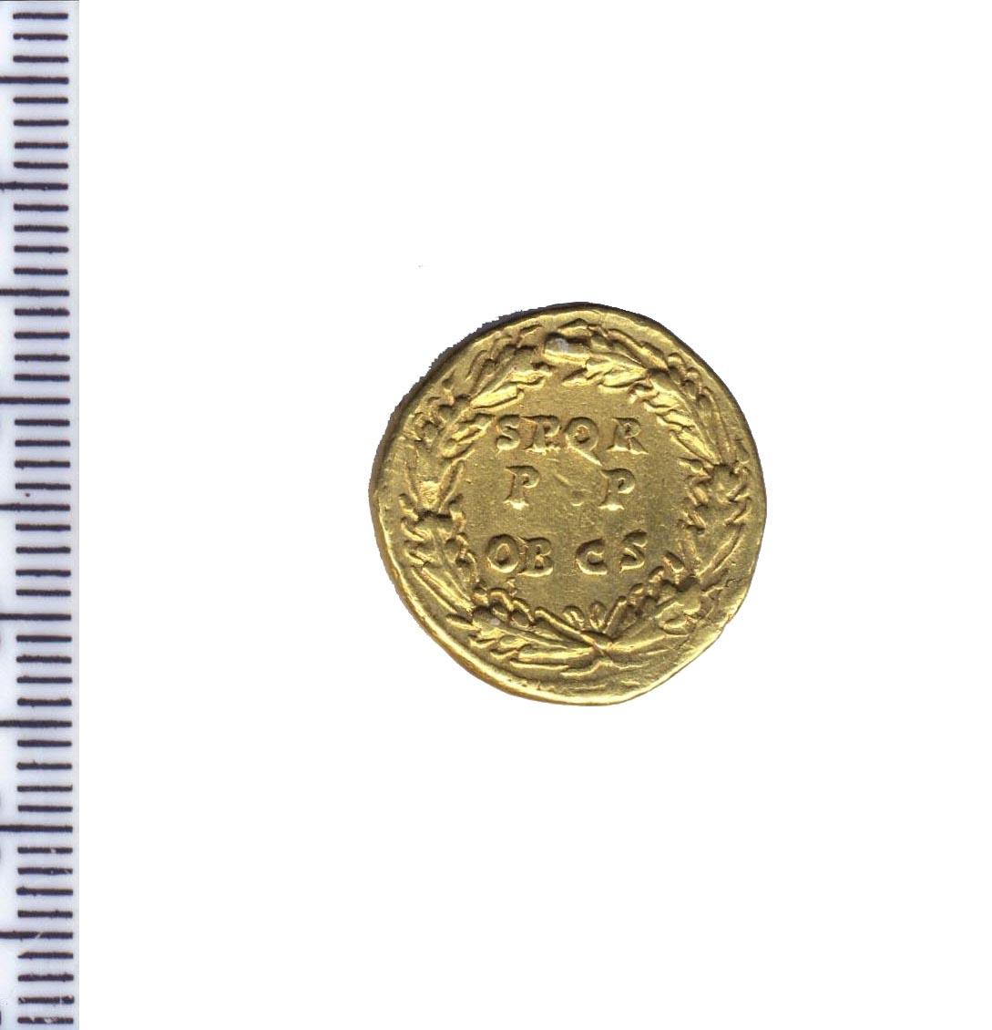 Dritto: Testa di Claudio con corona di alloro a destra. Rovescio: Legenda entro corona di quercia