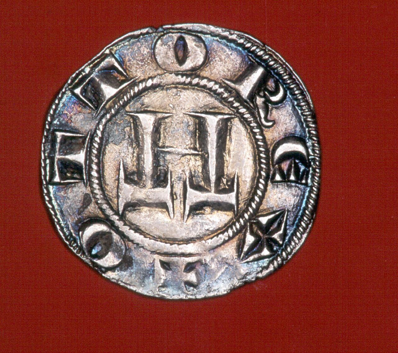 Dritto: Monogramma di Ottone IV imperatore. Rovescio: volto santo con corona in cornice mistilinea, cerchio, simbolo zecchiere