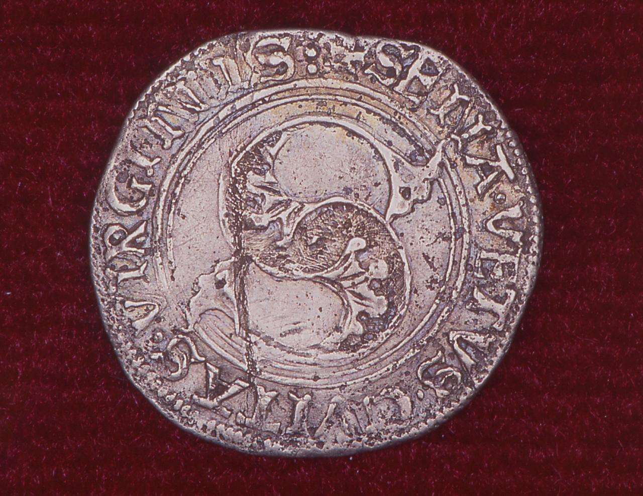 Dritto: lettera S fogliata; cornice; cerchio lineare. Iscrizione. Rovescio: Al centro croce fogliata e stemma zecchiere, iscrizione al bordo, doppio cerchio lineare, bordo perlato