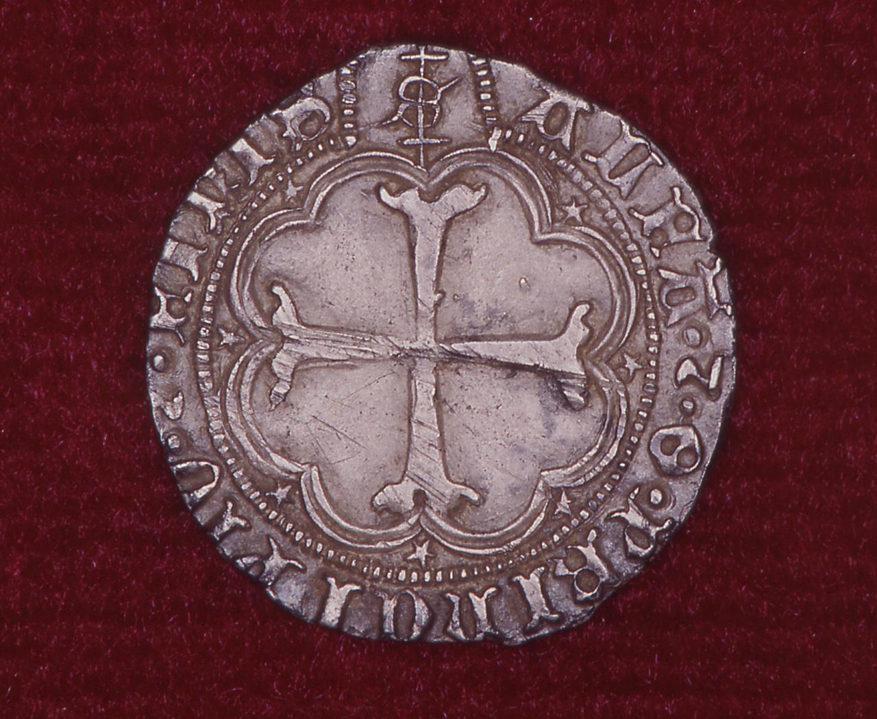 Dritto: lettera S fogliata; cornice a doppi archetti pensili; cerchio cordonato; cerchio lineare. Iscrizione. Rovescio: Al centro croce fogliata cornice a doppi archetti pensili; cerchio perlinato; stellette e stemma zecchiere, iscrizione al bordo