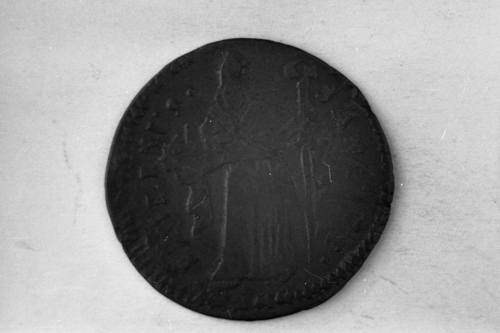 Dritto: Scudo coronato con banda su cui LIBERTAS, sotto, nel giro, 17 57. Rovescio: Il santo, nimbato, stante con pastorale nella destra e la città nella sinistra