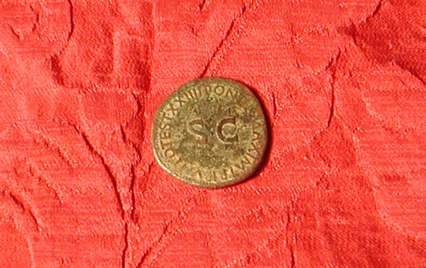 Dritto: testa nuda, di profilo, di Tiberio a s.; c. perlinato. Rovescio: legenda S C; c. perlinato