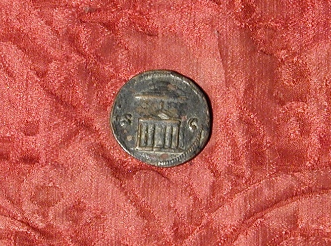 Dritto: testa laureata, di profilo, di Agrippa a d.; c. perlinato. Rovescio: tempio esastilo con frontone triangolare sormontato da cupola; c. cordonato