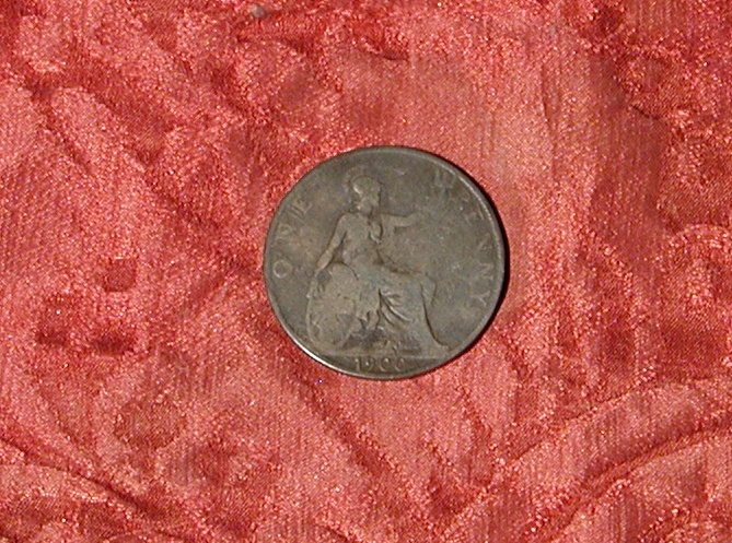 Dritto: Busto di Vittoria velata e coronata di profilo a sinistra, senza contorno. Rovescio: Figura allegorica femminile seduta rivolta a destra, con scudo a s. e tridente a d., tenuto con la sinistra; nell'esergo 1900; in cerchio perlinato fine