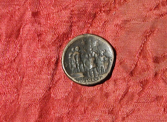 Dritto: Testa di profilo dell'imperatore laureato a destra. Rovescio: Gruppo di armati con le insegna imperiali davanti all'imperatore stante sopra piattaforma