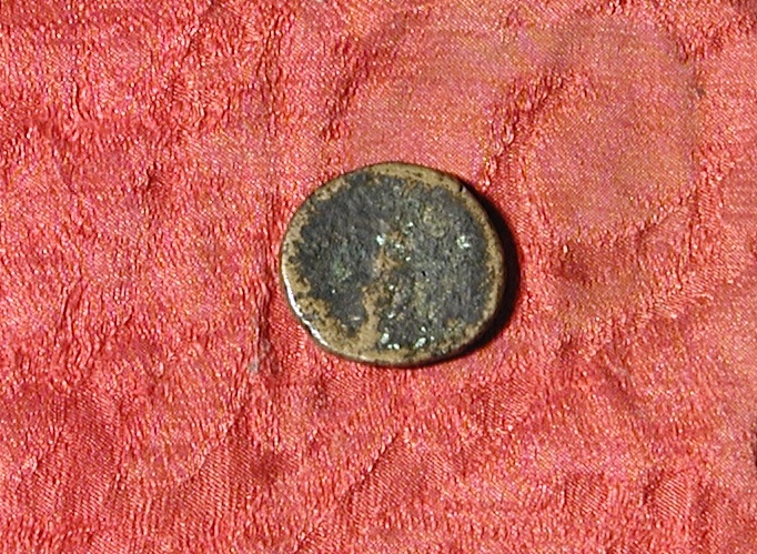Dritto: busto femminile con capelli raccolti sulla nuca, di profilo, a d.; c. non leggibile. Rovescio: figura non determinata stante a s.; c. non leggibile