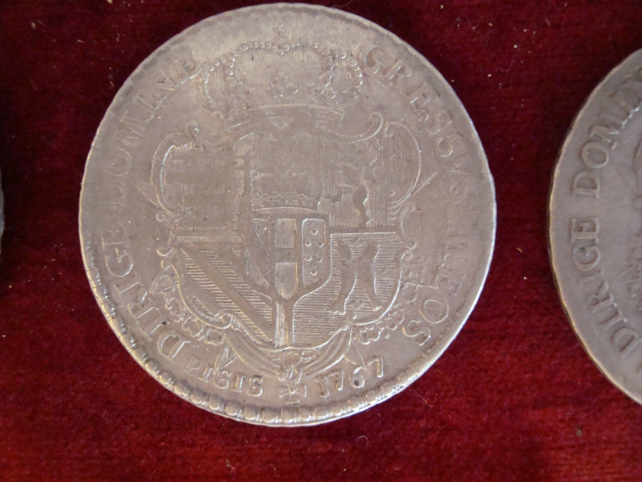 Dritto: busto corazzato a sinistra; accette incrociate. Rovescio: stemma a targa barocca coronato