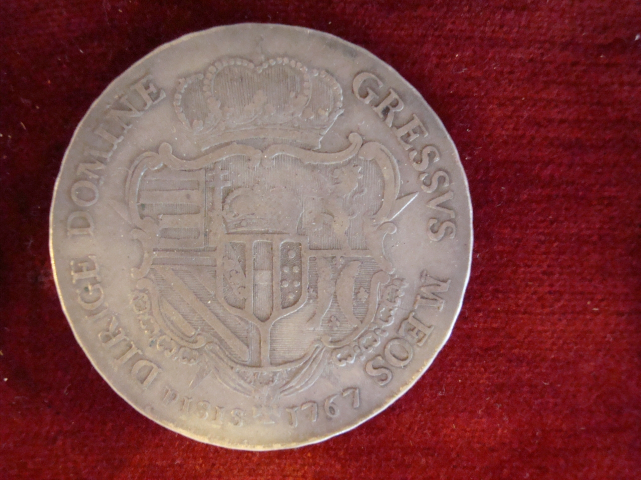 Dritto: busto paludato a sinistra; accette incrociate. Rovescio: stemma a targa barocca coronato