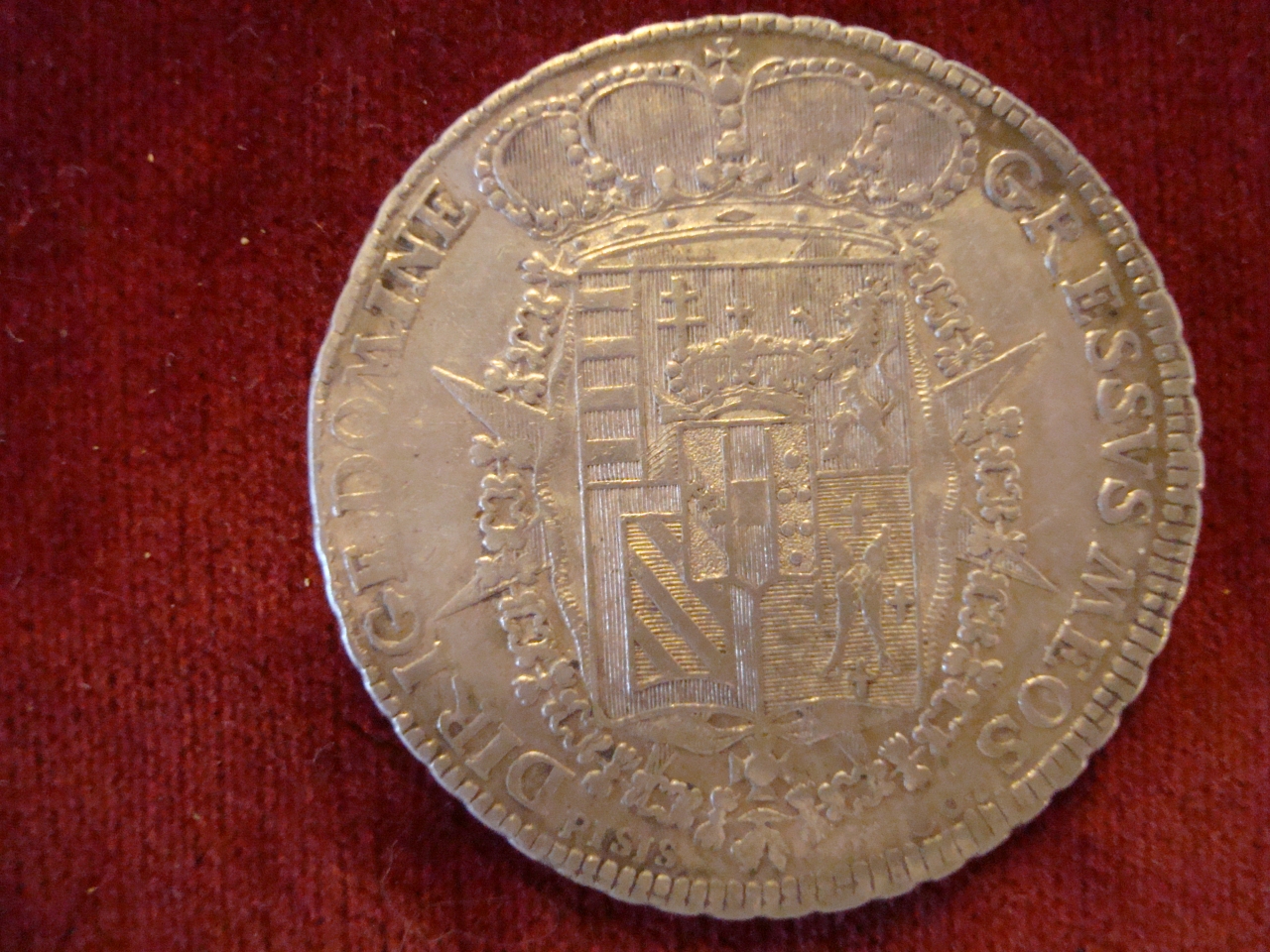 Dritto: busto corazzato a destra; accette incrociate. Rovescio: stemma rettangolare coronato circondato dal collare del Toson d'oro