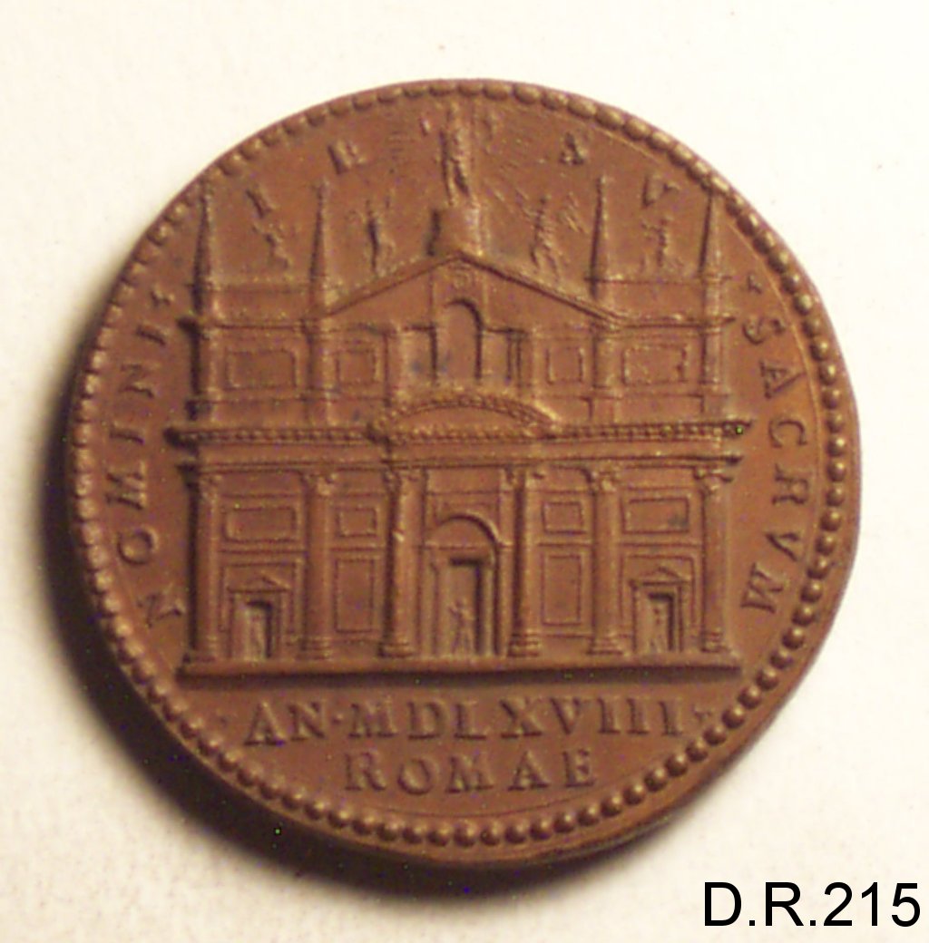 Dritto: busto del cardinale Alessandro Farnese volto a s. con mozzetta; caponudo,barba. Rovescio: la facciata della chiesa del Gesù, a Roma