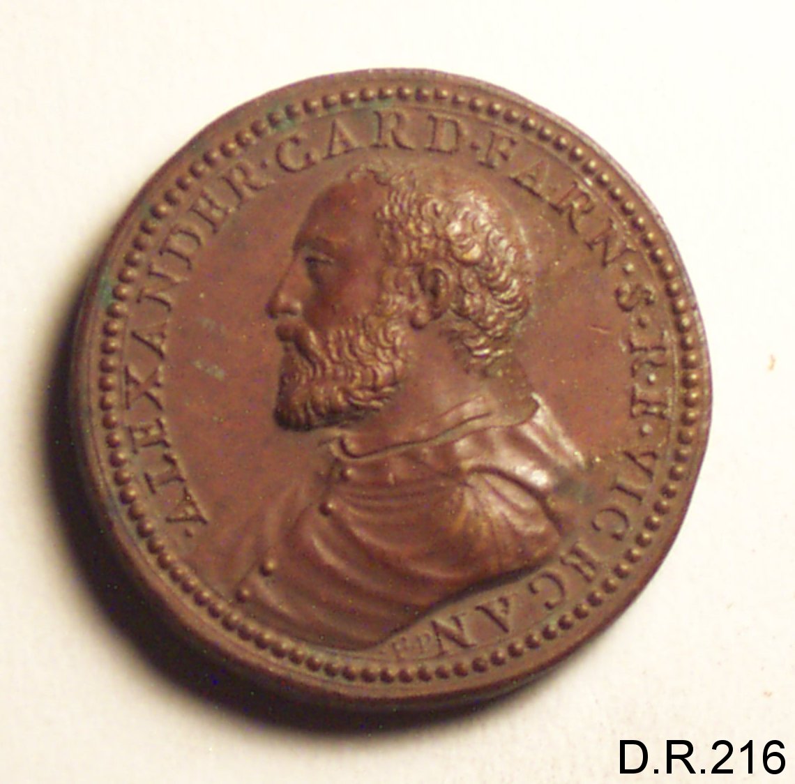 Dritto: busto del cardinale Alessandro Farnese volto a s. con mozzetta; caponudo,barba. Rovescio: la facciata delle chiesa del Gesù, a Roma