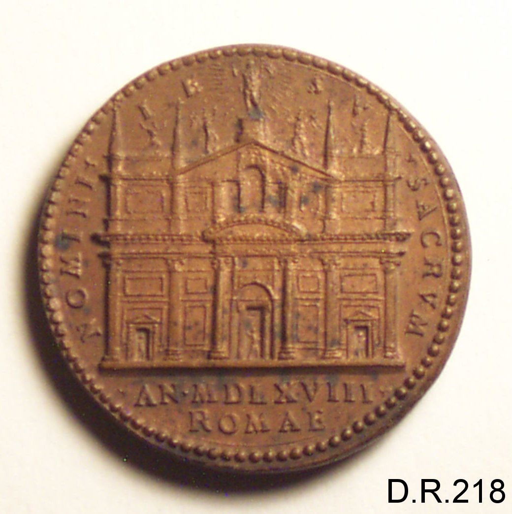 Dritto: busto del cardinale Alessandro Farnese volto a s. con mozzetta; caponudo,barba. Rovescio: la facciata della chiesa del Gesù, a Roma