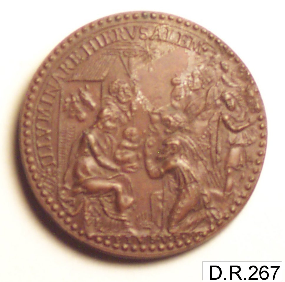 Dritto: busto di papa Pio V volto a s. con mozzetta e camauro; barbato. Rovescio: l'adorazione dei Magi. ai piedi della Vergine è scritto: pivs. v. p. m.;sul sasso dove e' seduta: an. vi