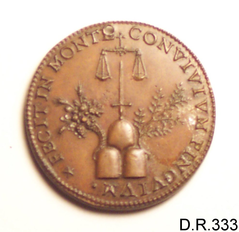 Dritto: busto di papa Sisto V volto a d. con piviale; capo nudo, barba. Rovescio: cornucopia, spada, ramo d'olivo su tre monticelli; in alto, bilancia
