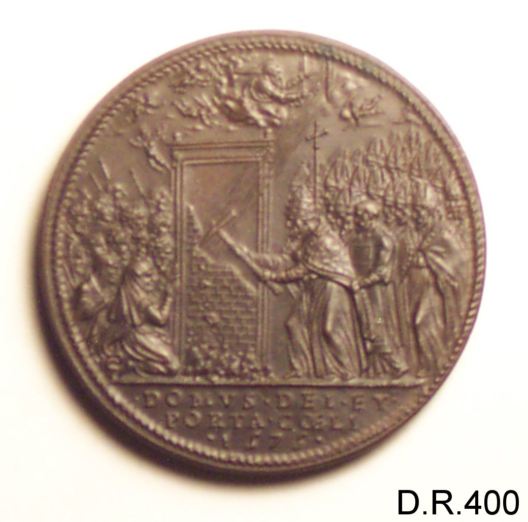 Dritto: busto di papa gregorio XIII volto a s. con piviale; capo nudo, barba.sulpiviale e' raffigurata la scena della crocifissione di san pietro. Rovescio: il pontefice apre la porta santa, seguito dai cadinali