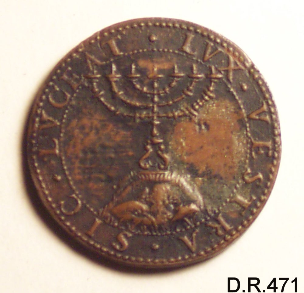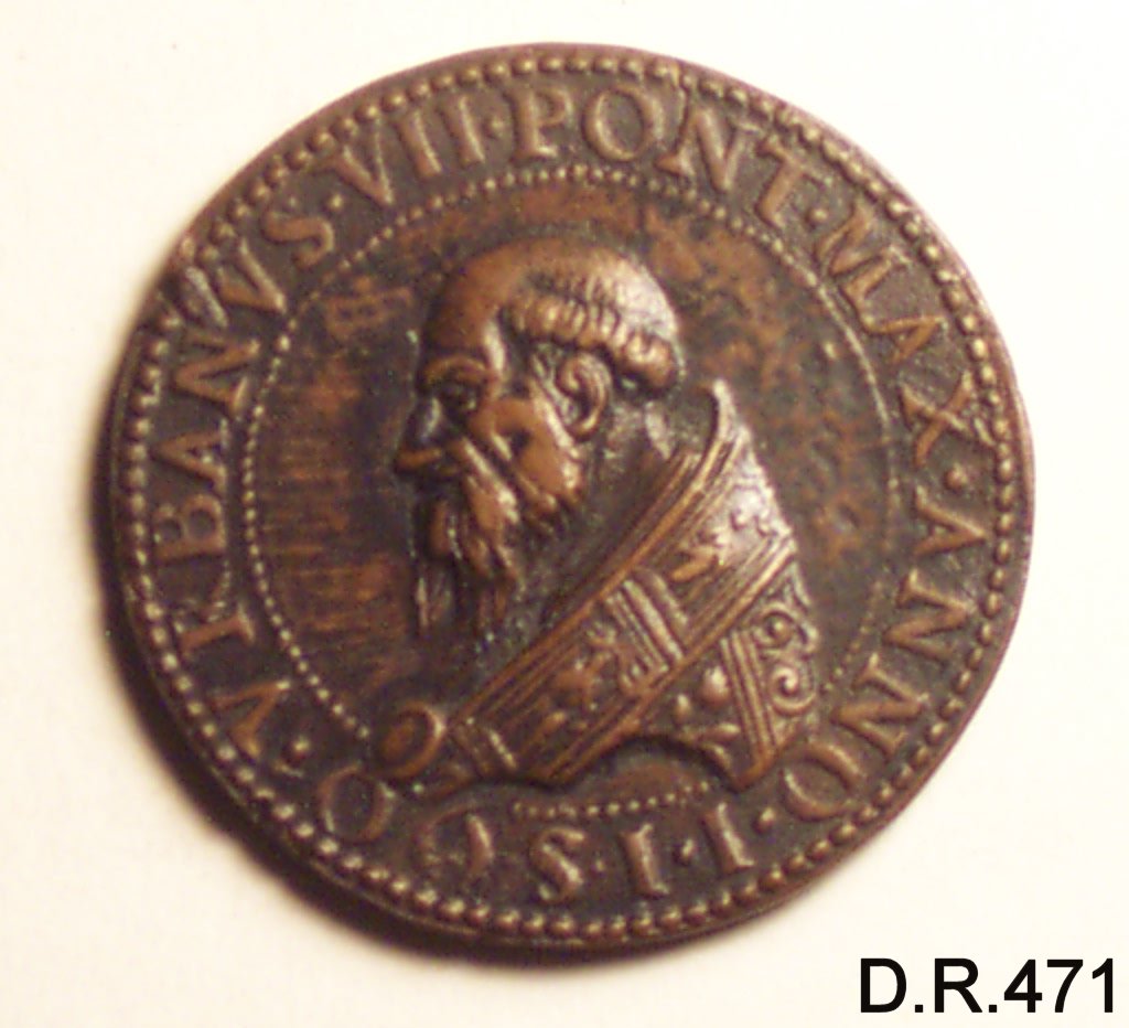 Dritto: busto di Urbano VII volto a sinistra con piviale, capo nudo e barba. Rovescio: candelabro a sette braccia