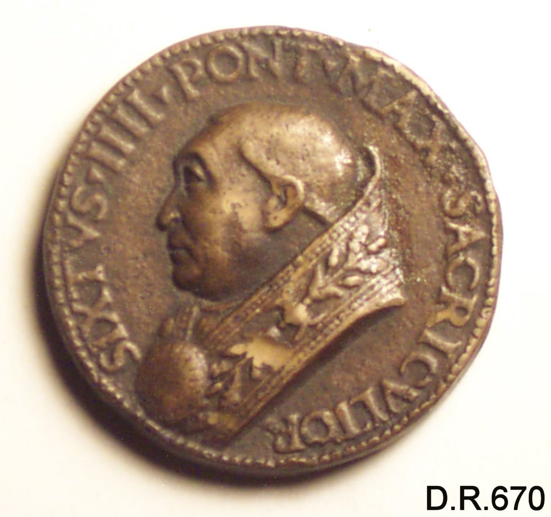 Dritto: busto di Sisto IV volto a sinistra con piviale e capo nudo. Rovescio: il ponte romano sisto sul tevere