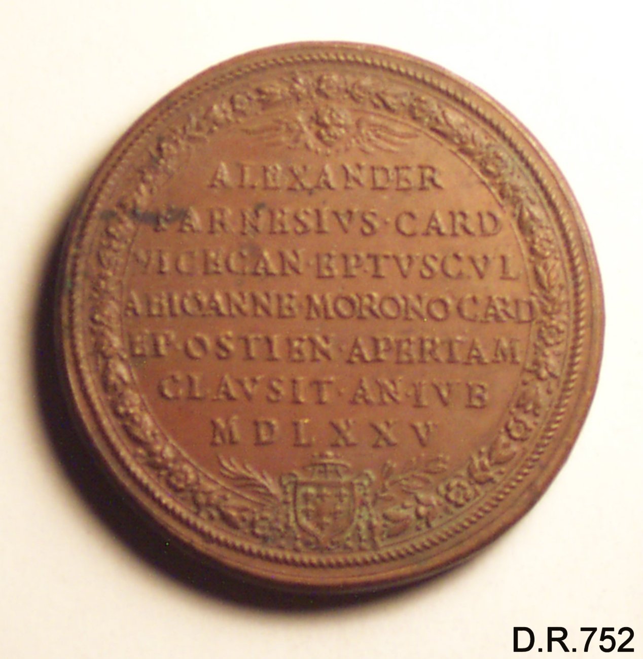 Dritto: La porta Santa murata con al centro una croce. Rovescio: Lo stemma Farnese, in basso, sormontato dal cappello cardinalizio; inaltoun cherubino. Corona sull'orlo
