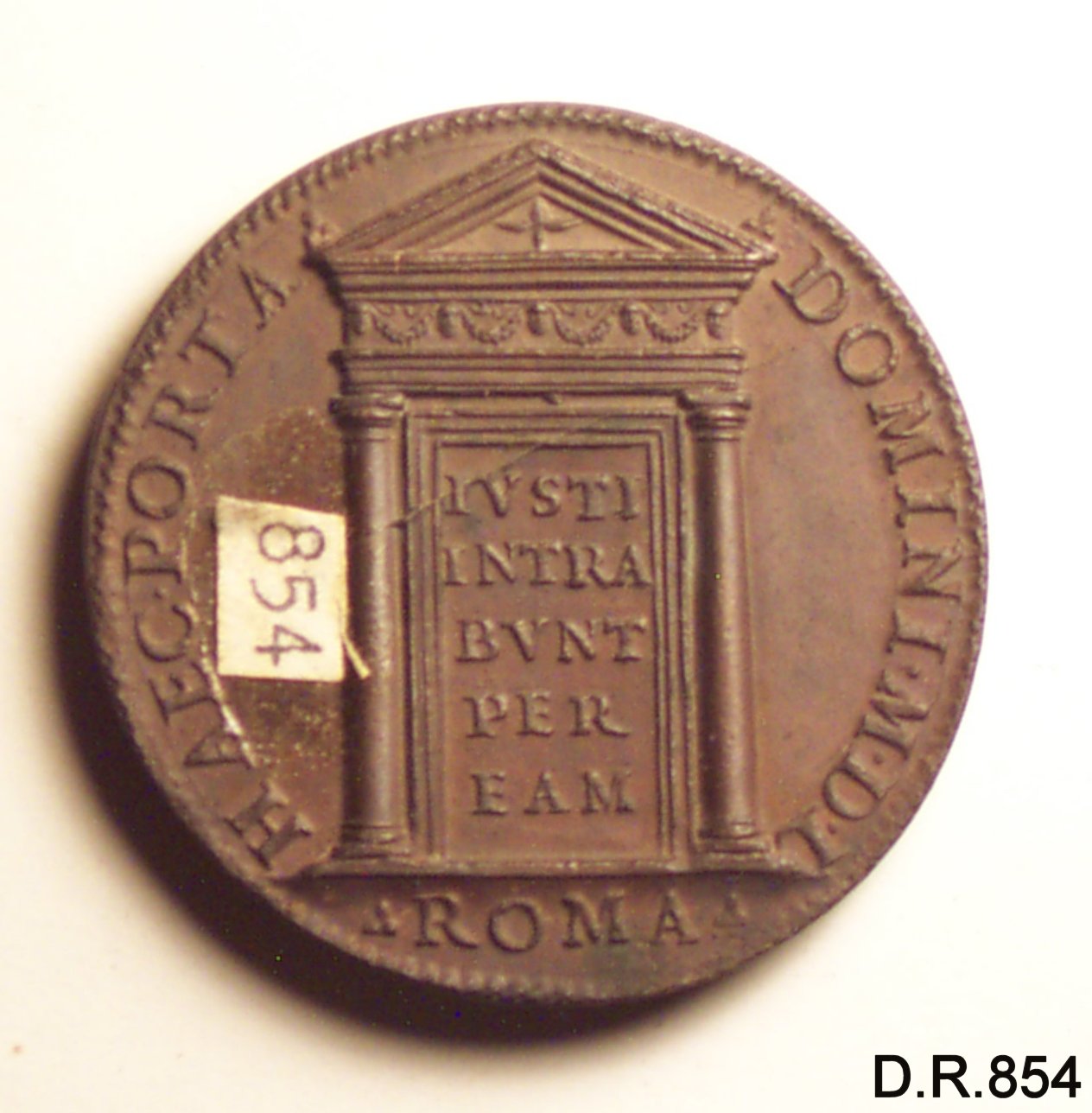 Dritto: Busto di Giulio III volto a destra, con piviale, capo nudo e barba. Rovescio: La porta Santa