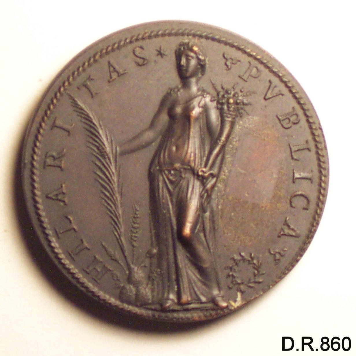 Dritto: Busto di Giulio III volto a destra, con piviale, capo nudo e barba. Rovescio: Donna in piedi con palma e cornucopia